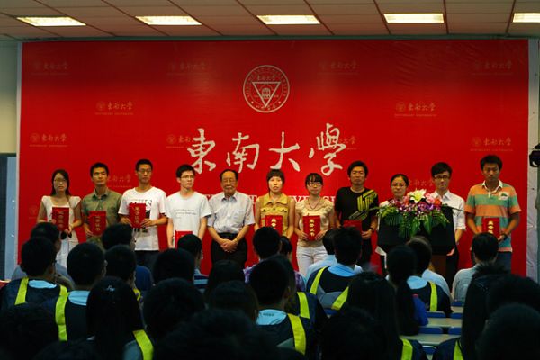 6月18日上午,信息科学与工程学院2013年度“孙庆云创新奖学金”、“雷克奖学金”颁奖仪式在九龙湖校区J1-111报告厅隆重举行。学院主要党政领导尤肖虎、李久贤、洪伟、孟桥、陈晓曙、张在琛、王海明、陈继新等出席,58届杰出校友庄昆杰老师、61届杰出校友孙庆云先生、雷克通信有限公司董事长庄海帆校友专程回到母校参加颁奖仪式。仪式由学院党委副书记、副院长孙威主持。