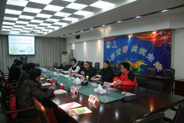 仪式上,徐梅琴局长首先介绍了南京师范大学附属扬子中学的情况,对东南大学常年来对扬子中学的支持以及优秀学生的培养表示感谢,希望两校能够进一步促进沟通、交流,更好地实现重点大学与重点中学之间教育的衔接。