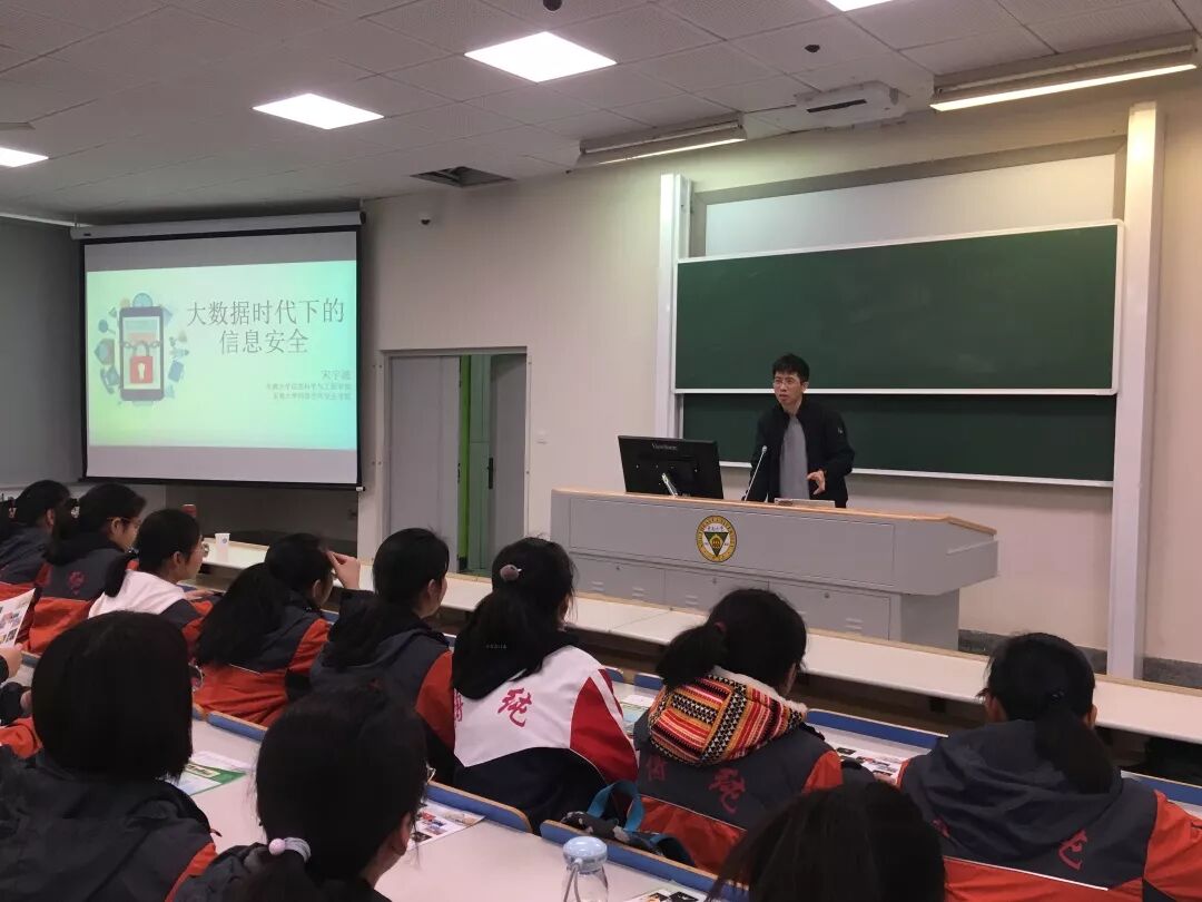 随后,网络空间安全学院的宋宇波副教授为学生们带来了题为《大数据时代下的信息安全》的精彩讲座,讲座从国家到个人生动形象地为同学们介绍了信息安全的紧要性,同学们被宋老师生动的课堂所深深吸引,教室里不时传来雷鸣般的掌声。这次讲座也让同学们进一步地感受到了“学在东南”的浓郁氛围。