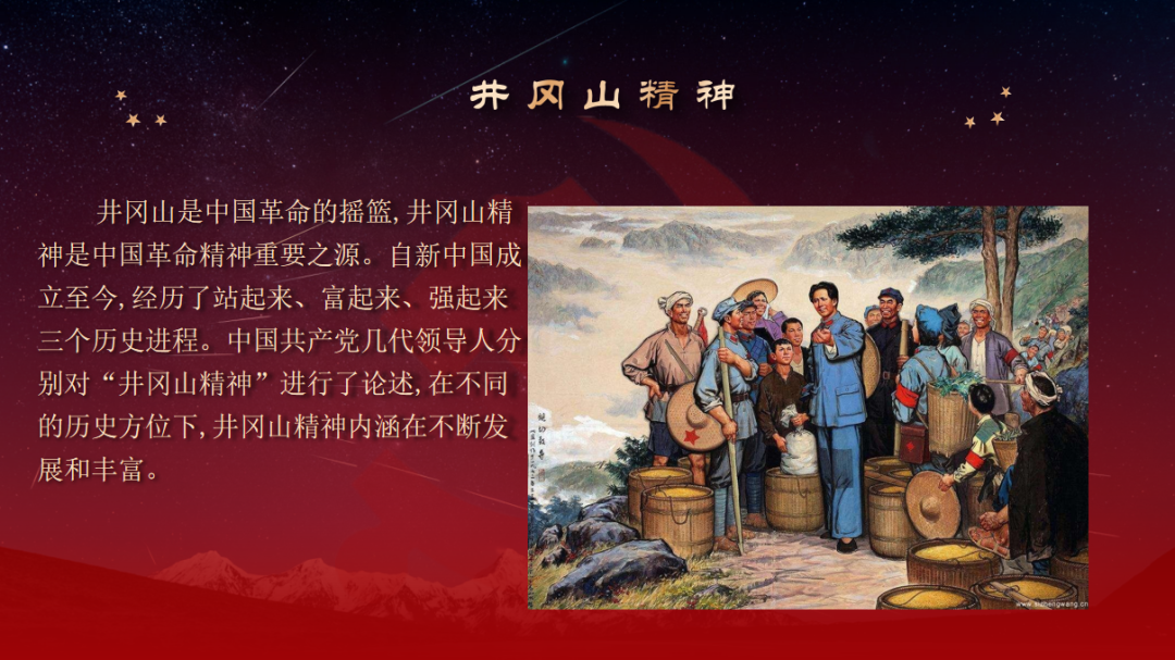 “坚定信念,艰苦奋斗,实事求是,勇闯新路,依靠群众,勇于胜利”,我对井冈山精神有了深刻的理解,革命胜利来之不易,是许多革命前辈用生命和鲜血换来的,我们需加倍珍惜。