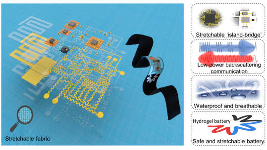 图2:可拉伸、透气的织物可穿戴无线温湿度监测系统,《Advanced Energy Materials》
